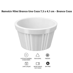Este conjunto de 6 ramekins brancos 90ml da linha Uno é perfeito para surpreender no momento de servir! Com formato circular e parte externa canelada, essas pequenas tigelas são ideais para servir geleias e molhos como maionese, ketchup, chimichurri ou vinagrete. Muito versáteis, os ramekins são desenvolvidas em plástico polipropileno com design clean, combinando facilmente com outros componentes sem interferir na apresentação da mesa.