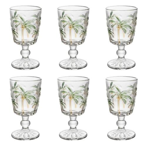 Conjunto 6 Taças Água Tropical Palm Hand Painting 310 ml Lyor