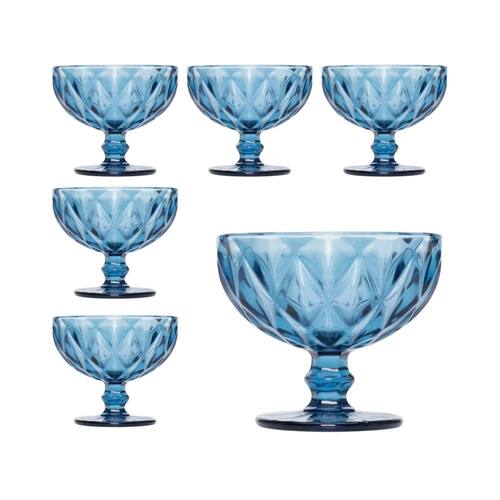 O conjunto com 6 taças de sobremesa em vidro azul é perfeito para deixar sua mesa posta ainda mais charmosa. Com design elegante e acabamento detalhado, essas taças valorizam o visual das suas sobremesas, trazendo um toque de sofisticação para qualquer ocasião.