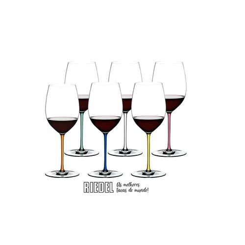 Kit 6 Taças de Vinho Cabernet/Merlot Fatto a Mano com Hastes Coloridas, Riedel