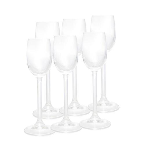 MATERIAL: CRISTAL;MARCA: BOHEMIA;FABRICAÇÃO: REPÚBLICA TCHECACOR: Transparente;ALTURA: 16.50cmDIÂMETRO da BOCA: 4cmDIÂMETRO ;da BASE: 5.50cmPESO de CADA TAÇA: 96grCAPACIDADE DE CADA TAÇA: 65mlCONTEÚDO DA EMBALAGEM: 01 JOGO DE TAÇAS DE LICOR BOHEMIA COM 6 UNIDADES.