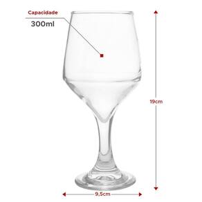Este conjunto conta com 6 taças, cada uma com capacidade de 300ml. Suas medidas são de 19cm de altura e 9,5cm de diâmetro, proporcionando um tamanho ideal para diferentes tipos de bebidas. Com essas taças, você terá a praticidade de servir tanto em casa quanto em um buffet, sempre impressionando seus convidados.