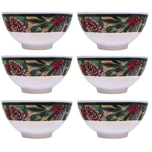 Não perca a oportunidade de adquirir o Conjunto de 6 Tigelas Bowl em Melamina com a estampa natalina de Pinhas e Folhagens. Elevará a experiência das suas refeições durante toda a temporada festiva.