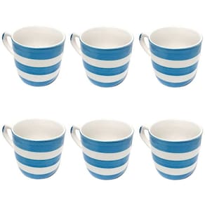 Conjunto 6 Xícaras de Café Cerâmica Faixas Azul e Branco 90ml JGXC078 - Hauskraft - Dorémi Casa & Decor