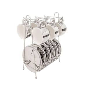 O design contemporâneo das xícaras e pires, combinado com a robustez e brilho do suporte em metal, faz deste conjunto uma peça de destaque em qualquer ambiente. Cada xícara possui capacidade de 90ml, ideal para servir aquele café expresso perfeito.