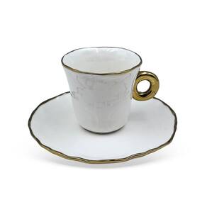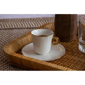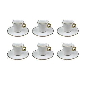 Conjunto 6 Xícaras de Café com Pires em Cerâmica Branco e Dourado