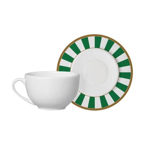 Conjunto Com 6 Xícaras De Chá Com Pires Stripe Verde 250Ml