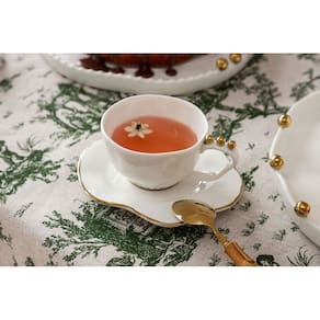 Transforme seus momentos à mesa com este conjunto de xícaras de chá em cerâmica branco e dourado, unindo beleza, funcionalidade e um toque de requinte ao seu dia a dia.