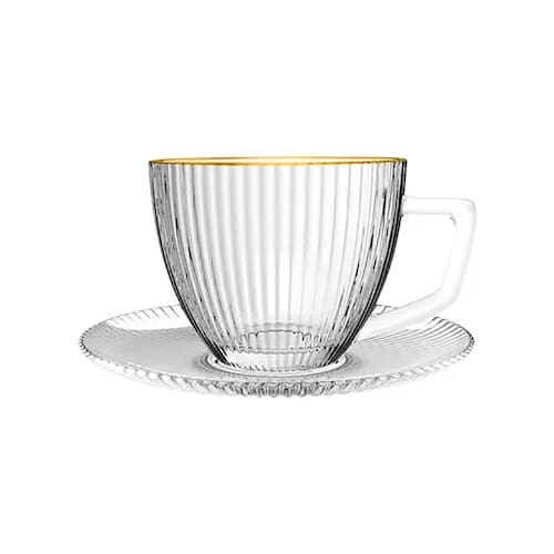 1 Conjunto 6 Xícaras de Chá c/ Pires Transparente c/ Borda Dourada Graffiato 230ml JGCH065-GD - Hauskraft