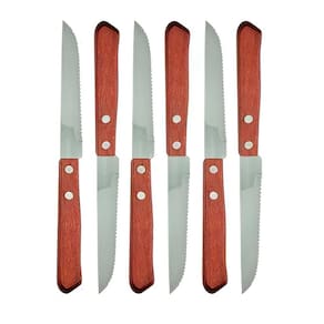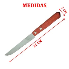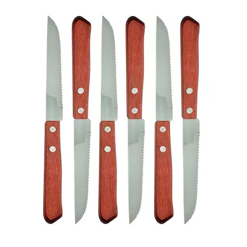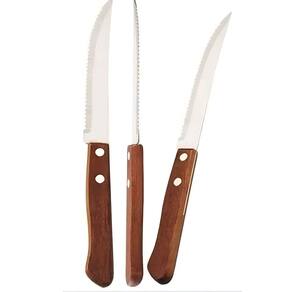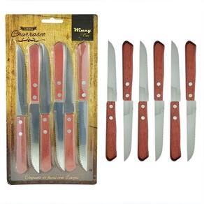 Conjunto 6pçs Facas Churrasco Cabo Madeira Aço Inoxidável