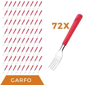 Conjunto 72 Garfos Linha Luna Vermelho Aço Inox Mesa Buffet