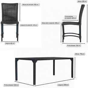 Mesa Ripada 100x200cm com 8 cadeiras Cannes Trama