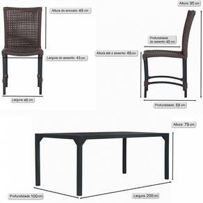 Conjunto 8 Cadeiras Cannes Corda Náutica e Mesa Retangular Ripada 2,00m em Alumínio para Edícula, Jardim, Área, Varanda, Cozinha - Pintura Preta - Marrom