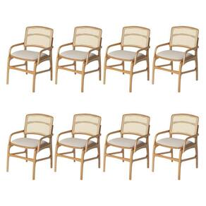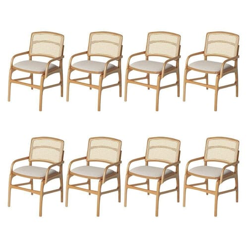 AS IMAGENS SÃO MERAMENTE ILUSTRATIVAS E PODEM SOFRER VARIAÇÕES DE COR E PEQUENOS DETALHES DE ACORDO COM O SEU MONITOR, ILUMINAÇÃO DO AMBIENTE E ATÉ MESMO A SUA PERCEPÇÃO VISUAL.Conjunto 8 Cadeiras de Cozinha FlorenÃa em Madeira Jequitibà Natural BraÃo Encosto Palha Linho Bege