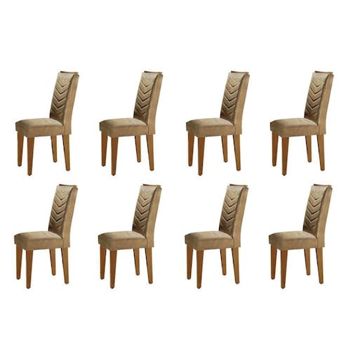 Informações Complementares: Cadeiras produzidas em madeira, estofadas com espumas e tecidos de qualidade, e acabamento em pintura PU, que garante maior durabilidade da cor.
