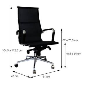 A cadeira OR-3303 alta possui assento de tela com estrutura cromada, base de encaixe metalizado e rodas em PU que não danificam o piso. Sistema relax com travamento. Ela proporciona conforto e praticidade ao usuário. Suporta até 120kg.