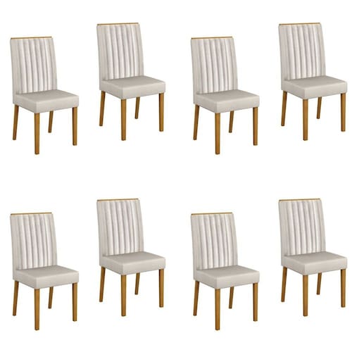São confortáveis para uso diário? Claro, são ideais para o uso constante. Ambiente Principal: Sala de Jantar codigo_ean: 7900288257642 Complexidade da Montagem: Baixa: pode ser montado por uma pessoa sozinha Cor: Palha Cor do Produto: Palha Itens Inclusos: Conjunto 8 cadeiras e manual de instrução. Marca: Valdemóveis Material Principal: Madeira Maciça Necessita Montagem: Sim Origem do Produto: Nacional Peso: 18,5 kg Quantidade de Itens: 8 Recomendações de Uso, Manutenção e Limpeza: Recomendamos que a limpeza seja feita apenas com pano umedecido. Sistema de Montagem: Parafusos