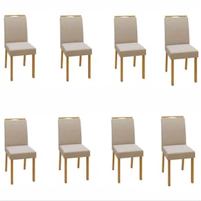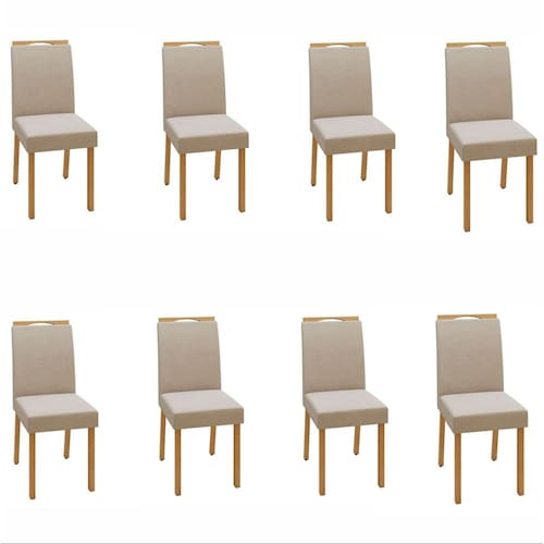 Enriquecido: Não Garantia: 03 Meses Descrição: Dê um toque de charme e conforto à sua sala de jantar ou cozinha com o nosso conjunto de cadeiras para sala de jantar, perfeitas para qualquer decoração! O assento é estofado em D-14, garantindo maciez na medida certa para horas de refeições ou conversas descontraídas. Os pés em madeira maciça oferecem robustez e durabilidade, enquanto o detalhe no espaldar do topo acrescenta personalidade e estilo ao ambiente. Compactas, resistentes e cheias de charme, essas cadeiras combinam praticidade e design em um só conjunto, ideais para quem busca conforto sem abrir mão da estética. A cadeira de jantar é confortável? Claro, ela é produzida com materiais de qualidade. Pode usá-las em outro ambiente? Sim, fica perfeita como conjunto de cadeiras para cozinha e na decoração para sala de estar. Não Publicado: Não Suporta Até (kg): 120 Serviço Montagem: 114259443 Altura do Conjunto: 96 Ambiente Principal: Sala de Jantar Material Principal: MDF/MDP EAN MadeiraMadeira: 7900288265753 Largura do Conjunto: 42 Quantidade de Itens: 8 Marca: Móveis Lopas Cor do Produto: Amêndoa Clean/Naturale Creme