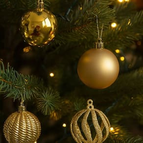 Com acabamento em dourado gold vivo, este kit adiciona um toque de glamour e requinte ao seu pinheiro, guirlandas ou arranjos decorativos. Cada bola possui 6cm de diâmetro e vem com cordão para pendurar, facilitando a aplicação na decoração.