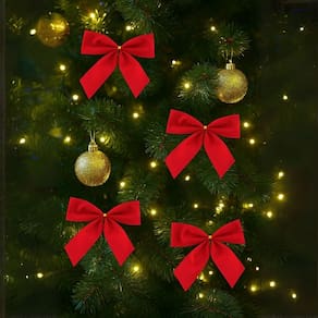 Deixe sua árvore de Natal ainda mais encantadora com este conjunto de laços decorativos vermelhos tradicionais, perfeitos para enfeitar pinheiros, guirlandas, arranjos e embalagens de presentes. Produzidos em tecido camurça suave, possuem acabamento clássico e elegante, ideal para composições natalinas sofisticadas e cheias de vida.