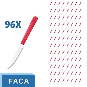 Conjunto 96 Facas Aço Inox Cabo Plástico Vermelho Luna