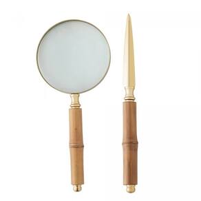 Conjunto Abridor de Carta e Lupa de Aço Inox com Cabo de Bambu Dourado - Wolff