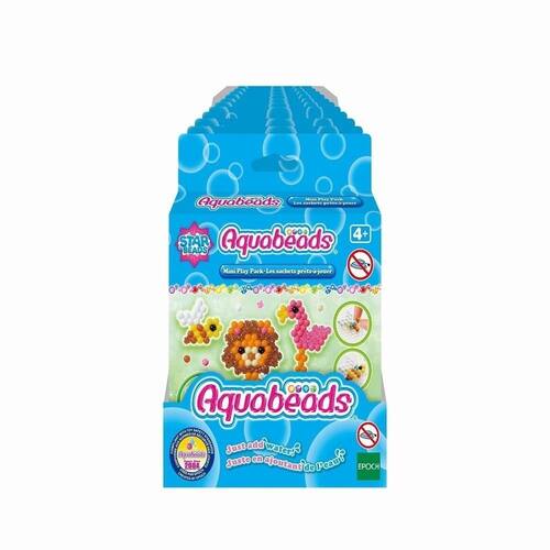 Aquabeads é o kit autêntico de artesanato de miçangas ativado por água! Desde 2004, crianças de todo o mundo criaram milhões de designs de Aquabeads. os pacotes mini play incluem 120 miçangas sólidas, em formato de joia e estrela, uma bandeja de um quarto, uma pipeta de água, uma folha de modelo com instruções. Seguindo a folha de modelo, coloque as miçangas na bandeja para criar seu design. Usando o pulverizador, borrife água nas miçangas para fazê-las grudar magicamente!