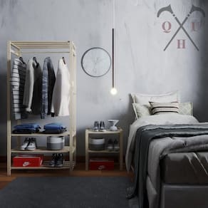 - Estante arara em madeira maciça reflorestada;