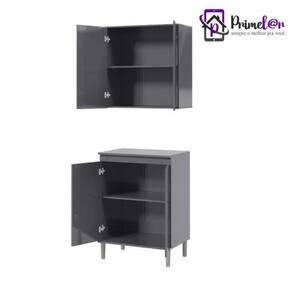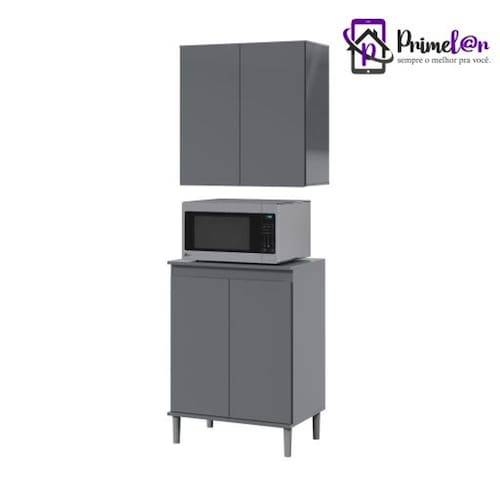 Conjunto Armário Aéreo e Balcão Microondas Para Cozinha 02 Portas EJ - Cinza