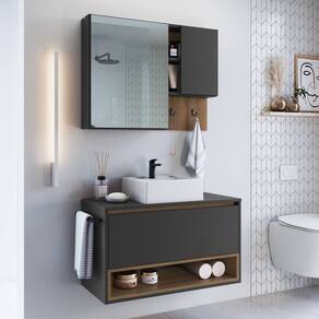 Transforme seu banheiro com este conjunto sofisticado e prático, perfeito para quem busca requinte, organização e funcionalidade. O Gabinete conta com 01 toalheiro em aço com pintura epóxi, 01 porta basculante e 01 nicho aberto, ideal para acomodar itens essenciais de forma acessível. A espelheira se destaca pelo design versátil, com nicho aberto, suporte para toalhas e 01 porta com espelho que esconde prateleiras internas, maximizando o espaço. O grande diferencial é a montagem flexível: você pode posicionar o suporte para toalhas no lado direito ou esquerdo, sem necessidade de furar paredes, garantindo mais praticidade e personalização. Esse conjunto combina estilo moderno, durabilidade e otimização do espaço, perfeito para banheiros de qualquer tamanho. Invista no conforto e elegância que seu ambiente merece. Acompanha Cuba de Mármore Sintético. Este móvel chegará em sua casa separado em 03 Volumes.