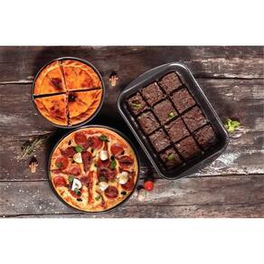 Pizza, bolo ou aquela lasanha deliciosa para toda a família. Seja qual for a receita, o jogo de assadeiras Tramontina Brasil em alumínio com revestimento interno e externo em antiaderente Starflon Max grafite 03 peças é indispensável. Composto por três assadeiras de tamanhos e funções diferentes e produzidas em alumínio, ele é um jogo que conta com espessura que proporciona cozimento rápido e uniforme dos alimentos. Seu revestimento interno e externo é em Starflon Max, antiaderente que evita que os alimentos grudem e que torna as assadeiras fáceis de limpar. Além de todas essas características, as peças ainda podem ir à máquina de lavar louças, facilitando suas tarefas na cozinha. Escolha Tramontina e deixe seu dia a dia muito mais prático e cheio de sabor!