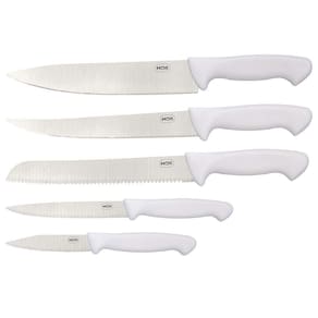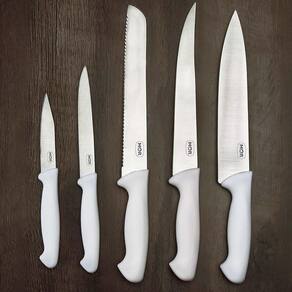 1 Faca para legumes 3,5 1 Faca para desossar 5 1 Faca para pão 8 1 Faca para lardear 8 1 Faca para carne 8
