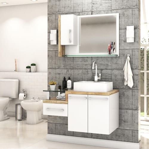 Sobre o ProdutoConjunto Balcão C/Cuba Aria 41 e Espelheira Legno 830 Branco ChessDescrição do Produto:O Conjunto (Balcão + Cuba + Espelheira) Legno KTLG830 é um produto compacto, de design contemporâneo e minimalista, projetado para se encaixar no seu espaço, composto por um gabinete com gaveta lateral e tampo de apoio de vidro 10mm. A espelheira possui 01 porta, espelho lapidado e 01 prateleira de vidro 10mm, sendo perfeita para organizar suas coisas e fazer parte da decoração do seu linha Legno combina a leveza do branco e detalhes em vidro com tons amadeirados, conferindo uma personalidade contemporânea aos móveis de design minimalista e traços retos. Produtos que aliam funcionalidade e praticidade ao seu dia a dia são características marcantes desta coleção!Itens Inclusos:1 Conjunto Balcão C/Cuba e EspelheiraDimensões dos Produtos:Gabinete: 83 x 43 x 51 cmEspelheira: 77 x 15 x 54 cmCuba 41 x 30 x 9,5 cmInformações Logísticas (Comp. X Prof. X Alt.) 60 x 50,5 x 58 cm - Peso: 26,91 81 x 19 x 59 cm - Peso: 10,685 KgPeso Total: 37,595 KgObservações:Não acompanha acessórios decorativos. Imagens meramente ilustrativas.Informações Técnicas / Características:- Cor do Produto: Branco Chess- Cor do Predominante: Branco- Marca: Compace- Modelo: KTLG830- Linha: Legno- Material: Mdp - Acabamento: Perffect Acetinado- Escala de Brilho: Fosco- Fita de Borda: Pvc- Possui Portas: 3- Tipo de Porta: Bater- Tipo da Dobradiça: Metálica- Possui Gavetas: 1- Tipo da Corrediça: Telescópica- Possui Chave: Não- Peso Máximo por Gaveta: 3 kg- Material do Puxador: Abs- Possui Prateleiras: 2- Peso Máximo por Prateleira: 1 kg Espelheira / 4 kg Balcão- Possui Pés: Não, suspenso - Possui Espelho: Sim- Possui Vidro: Sim- Acompanha Cuba / Lavatório: Sim, de Mármore Sintético- Furação para Cuba / Lavatório: Não- Tipo da Cuba: Apoio- Cor da Cuba: Branca- Suporta Até (kg): 20 kg - Peso Lí.: 34,56Kg- Recomendações de Uso, Manutenção e Limpeza: Para a limpeza, utilize flanela seca ou pano macio levemente umedecido em água. Utilize um pano seco em seguida. Evite com produtos químicos (solventes, thinner, acetona, etc) e não utilize nenhum tipo de esponja de aço.- Necessita de Montagem: Sim / Acompanha Manual de Montagem- Complexidade da Montagem: Média: pode ser montado por mais de uma pessoa e/ou necessite de maior conhecimento para montagem.- Garantia: 6 meses Material: Mdp | Acabamento: Perffect Acetinado | Escala de Brilho: Fosco | Fita de Borda: Pvc | Possui Portas: 3 | Tipo de Porta: Bater | Tipo da Dobradiça: Metálica | Limite de unidades por venda: É possível comprar até 1 unidade por venda. | Comprimento: 83 | Quantidade máxima de pedido: 1 | Largura: 43 | Altura: 51 | Profundidade: 43 | Preço tabelado: 635 | Cor: Multicolorido | Certificação de teste externa: Não Aplicável | Baterias são necessárias?: false | Palavras-chave de Pesquisa: Não aplicável | Fonte de energia: Não aplicável | Fabricante: Compace | da peça: | Principais Características do Produto 0: | Exige montagem: | Peso do item: | Componentes incluídos: | Dimensões do item P x L x A: | Is Fragile: | Principais Características do Produto 2: | Principais Características do Produto 1: | Quantidade de itens: | de caixas: | do modelo: Cor: Branco Chess C/Carvalho