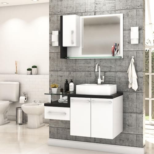Sobre o ProdutoConjunto Balcão C/Cuba Aria 41 e Espelheira Legno 830 Branco ChessDescrição do Produto:O Conjunto (Balcão + Cuba + Espelheira) Legno KTLG830 é um produto compacto, de design contemporâneo e minimalista, projetado para se encaixar no seu espaço, composto por um gabinete com gaveta lateral e tampo de apoio de vidro 10mm. A espelheira possui 01 porta, espelho lapidado e 01 prateleira de vidro 10mm, sendo perfeita para organizar suas coisas e fazer parte da decoração do seu linha Legno combina a leveza do branco e detalhes em vidro com tons amadeirados, conferindo uma personalidade contemporânea aos móveis de design minimalista e traços retos. Produtos que aliam funcionalidade e praticidade ao seu dia a dia são características marcantes desta coleção!Itens Inclusos:1 Conjunto Balcão C/Cuba e EspelheiraDimensões dos Produtos:Gabinete: 83 x 43 x 51 cmEspelheira: 77 x 15 x 54 cmCuba 41 x 30 x 9,5 cmInformações Logísticas (Comp. X Prof. X Alt.) 60 x 50,5 x 58 cm - Peso: 26,91 81 x 19 x 59 cm - Peso: 10,685 KgPeso Total: 37,595 KgObservações:Não acompanha acessórios decorativos. Imagens meramente ilustrativas.Informações Técnicas / Características:- Cor do Produto: Branco Chess- Cor do Predominante: Branco- Marca: Compace- Modelo: KTLG830- Linha: Legno- Material: Mdp - Acabamento: Perffect Acetinado- Escala de Brilho: Fosco- Fita de Borda: Pvc- Possui Portas: 3- Tipo de Porta: Bater- Tipo da Dobradiça: Metálica- Possui Gavetas: 1- Tipo da Corrediça: Telescópica- Possui Chave: Não- Peso Máximo por Gaveta: 3 kg- Material do Puxador: Abs- Possui Prateleiras: 2- Peso Máximo por Prateleira: 1 kg Espelheira / 4 kg Balcão- Possui Pés: Não, suspenso - Possui Espelho: Sim- Possui Vidro: Sim- Acompanha Cuba / Lavatório: Sim, de Mármore Sintético- Furação para Cuba / Lavatório: Não- Tipo da Cuba: Apoio- Cor da Cuba: Branca- Suporta Até (kg): 20 kg - Peso Lí.: 34,56Kg- Recomendações de Uso, Manutenção e Limpeza: Para a limpeza, utilize flanela seca ou pano macio levemente umedecido em água. Utilize um pano seco em seguida. Evite com produtos químicos (solventes, thinner, acetona, etc) e não utilize nenhum tipo de esponja de aço.- Necessita de Montagem: Sim / Acompanha Manual de Montagem- Complexidade da Montagem: Média: pode ser montado por mais de uma pessoa e/ou necessite de maior conhecimento para montagem.- Garantia: 6 meses Material: Mdp | Acabamento: Perffect Acetinado | Escala de Brilho: Fosco | Fita de Borda: Pvc | Possui Portas: 3 | Tipo de Porta: Bater | Tipo da Dobradiça: Metálica | Limite de unidades por venda: É possível comprar até 1 unidade por venda. | Comprimento: 83 | Quantidade máxima de pedido: 1 | Largura: 43 | Altura: 51 | Profundidade: 43 | Preço tabelado: 635 | Cor: Multicolorido | Certificação de teste externa: Não Aplicável | Baterias são necessárias?: false | Palavras-chave de Pesquisa: Não aplicável | Fonte de energia: Não aplicável | Fabricante: Compace | da peça: | Principais Características do Produto 0: | Exige montagem: | Peso do item: | Componentes incluídos: | Dimensões do item P x L x A: | Is Fragile: | Principais Características do Produto 2: | Principais Características do Produto 1: | Quantidade de itens: | de caixas: | do modelo: Cor: Branco Chess C/Preto Ônix