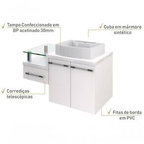 Conjunto Balcão C/cuba Aria 41 Legno 830 Perffect Acetinado Branco Chess C/branco Chess Sobre o ProdutoConjunto Balcão C/Cuba Aria 41 Legno 830 Branco ChessDescrição do Produto:O Conjunto (Balcão + Cuba) Legno GCLG830 é um produto compacto, de design contemporâneo e minimalista, projetado para se encaixar no seu espaço, composto por um gabinete com gaveta lateral e tampo de apoio de vidro 10mm, sendo perfeito para organizar suas coisas e fazer parte da decoração do seu linha Legno combina a leveza do branco e detalhes em vidro com tons amadeirados, conferindo uma personalidade contemporânea aos móveis de design minimalista e traços retos. Produtos que aliam funcionalidade e praticidade ao seu dia a dia são características marcantes desta coleção!Itens Inclusos:1 Conjunto Balcão C/CubaDimensões dos Produtos:Gabinete: 83 x 43 x 51 cmCuba 41 x 30 x 9,5 cmInformações Logísticas (Comp. X Prof. X Alt.) 60 x 50,5 x 58 cm - Peso: 26,91 81 x 19 x 59 cm - Peso: 1,205 KgPeso Total: 28,115 KgObservações:Não acompanha acessórios decorativos. Imagens meramente ilustrativas.Informações Técnicas / Características:- Cor do Produto: Branco Chess- Cor do Predominante: Branco- Marca: Compace- Modelo: GCLG830- Linha: Legno- Material: Mdp - Acabamento: Perffect Acetinado- Escala de Brilho: Fosco- Fita de Borda: Pvc- Possui Portas: 3- Tipo de Porta: Bater- Tipo da Dobradiça: Metálica- Possui Gavetas: 1- Tipo da Corrediça: Telescópica- Possui Chave: Não- Peso Máximo por Gaveta: 3 kg- Material do Puxador: Abs- Possui Prateleiras: 1- Peso Máximo por Prateleira: 4 kg- Possui Pés: Não, suspenso - Possui Espelho: Não- Possui Vidro: Sim- Acompanha Cuba / Lavatório: Sim, de Mármore Sintético- Furação para Cuba / Lavatório: Não- Tipo da Cuba: Apoio- Cor da Cuba: Branca- Suporta Até (kg): 19 kg - Peso Lí.: 25,08Kg- Recomendações de Uso, Manutenção e Limpeza: Para a limpeza, utilize flanela seca ou pano macio levemente umedecido em água. Utilize um pano seco em seguida. Evite com produtos químicos (solventes, thinner, acetona, etc) e não utilize nenhum tipo de esponja de aço.- Necessita de Montagem: Sim / Acompanha Manual de Montagem- Complexidade da Montagem: Média: pode ser montado por mais de uma pessoa e/ou necessite de maior conhecimento para montagem.- Garantia: 6 meses Material: Mdp | Acabamento: Perffect Acetinado | Escala de Brilho: Fosco | Fita de Borda: Pvc | Possui Portas: 3 | Tipo de Porta: Bater | Tipo da Dobradiça: Metálica | Limite de unidades por venda: É possível comprar até 1 unidade por venda. | Comprimento: 83 | Quantidade máxima de pedido: 1 | Largura: 43 | Altura: 51 | Profundidade: 43 | Preço tabelado: | Cor: Multicolorido | Certificação de teste externa: Não Aplicável | Baterias são necessárias?: false | Palavras-chave de Pesquisa: Não aplicável | Fonte de energia: Não aplicável | Fabricante: Compace | Peso do item: | da peça: | Principais Características do Produto 2: | Componentes incluídos: | Principais Características do Produto 1: | Principais Características do Produto 0: | Dimensões do item P x L x A: | Is Fragile: | Exige montagem: | Quantidade de itens: | de caixas: | do modelo: Cor: Branco Chess C/Branco Chess