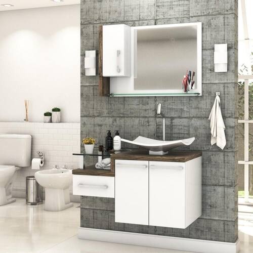 Sobre o ProdutoConjunto Balcão C/Cuba F44 e Espelheira Legno 830 Branco ChessDescrição do Produto:O Conjunto (Balcão + Cuba + Espelheira) Legno KTLG830 é um produto compacto, de design contemporâneo e minimalista, projetado para se encaixar no seu espaço, composto por um gabinete com gaveta lateral e tampo de apoio de vidro 10mm. A espelheira possui 01 porta, espelho lapidado e 01 prateleira de vidro 10mm, sendo perfeita para organizar suas coisas e fazer parte da decoração do seu linha Legno combina a leveza do branco e detalhes em vidro com tons amadeirados, conferindo uma personalidade contemporânea aos móveis de design minimalista e traços retos. Produtos que aliam funcionalidade e praticidade ao seu dia a dia são características marcantes desta coleção!Itens Inclusos:1 Conjunto Balcão C/Cuba e EspelheiraDimensões dos Produtos:Gabinete: 83 x 43 x 51 cmEspelheira: 77 x 15 x 54 cmCuba 43,5 x 36 x 12 cmInformações Logísticas (Comp. X Prof. X Alt.) 60 x 50,5 x 58 cm - Peso: 26,23 81 x 19 x 59 cm - Peso: 10,685 KgPeso Total: 36,915 KgObservações:Não acompanha acessórios decorativos. Imagens meramente ilustrativas.Informações Técnicas / Características:- Cor do Produto: Branco Chess- Cor do Predominante: Branco- Marca: Compace- Modelo: KTLG830- Linha: Legno- Material: Mdp - Acabamento: Perffect Acetinado- Escala de Brilho: Fosco- Fita de Borda: Pvc- Possui Portas: 3- Tipo de Porta: Bater- Tipo da Dobradiça: Metálica- Possui Gavetas: 1- Tipo da Corrediça: Telescópica- Possui Chave: Não- Peso Máximo por Gaveta: 3 kg- Material do Puxador: Abs- Possui Prateleiras: 2- Peso Máximo por Prateleira: 1 kg Espelheira / 4 kg Balcão- Possui Pés: Não, suspenso - Possui Espelho: Sim- Possui Vidro: Sim- Acompanha Cuba / Lavatório: Sim, de Mármore Sintético- Furação para Cuba / Lavatório: Não- Tipo da Cuba: Apoio- Cor da Cuba: Branca- Suporta Até (kg): 20 kg - Peso Lí.: 33,88Kg- Recomendações de Uso, Manutenção e Limpeza: Para a limpeza, utilize flanela seca ou pano macio levemente umedecido em água. Utilize um pano seco em seguida. Evite com produtos químicos (solventes, thinner, acetona, etc) e não utilize nenhum tipo de esponja de aço.- Necessita de Montagem: Sim / Acompanha Manual de Montagem- Complexidade da Montagem: Média: pode ser montado por mais de uma pessoa e/ou necessite de maior conhecimento para montagem.- Garantia: 6 meses Material: Mdp | Acabamento: Perffect Acetinado | Escala de Brilho: Fosco | Fita de Borda: Pvc | Possui Portas: 3 | Tipo de Porta: Bater | Tipo da Dobradiça: Metálica | Tipo de Produto: Gabinete de Banheiro | Fabricante: Compace | Limite de unidades por venda: É possível comprar até 1 unidade por venda. | Quantidade máxima de pedido: 1 | Comprimento: 83 | Largura: 43 | Altura: 51 | Profundidade: 43 | Preço tabelado: 639 | Cor: Multicolorido | Certificação de teste externa: Não Aplicável | Baterias são necessárias?: false | Palavras-chave de Pesquisa: Não aplicável | Fonte de energia: Não aplicável | Peso do item: | Principais Características do Produto 1: | Componentes incluídos: | Exige montagem: | da peça: | Dimensões do item P x L x A: | Principais Características do Produto 2: | Principais Características do Produto 0: | Is Fragile: | Quantidade de itens: | de caixas: | do modelo: Cor: Branco Chess C/Carvalho Dark