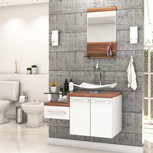 Sobre o ProdutoConjunto Balcão C/Cuba F44 e Espelheira Legno 831 Branco ChessDescrição do Produto:O Conjunto (Balcão + Cuba + Espelheira) Legno KTLG831 é um produto compacto, de design contemporâneo e minimalista, projetado para se encaixar no seu espaço, composto por um gabinete com gaveta lateral e tampo de apoio de vidro 10mm. A espelheira possui espelho lapidado e 01 prateleira de vidro 10mm, sendo perfeita para organizar suas coisas e fazer parte da decoração do seu linha Legno combina a leveza do branco e detalhes em vidro com tons amadeirados, conferindo uma personalidade contemporânea aos móveis de design minimalista e traços retos. Produtos que aliam funcionalidade e praticidade ao seu dia a dia são características marcantes desta coleção!Itens Inclusos:1 Conjunto Balcão C/Cuba e EspelheiraDimensões dos Produtos:Gabinete: 83 x 43 x 51 cmEspelheira: 37,5 x 11,5 x 67,5 cmCuba 43,5 x 36 x 12 cmInformações Logísticas (Comp. X Prof. X Alt.) 60 x 50,5 x 58 cm - Peso: 30,51 KgPeso Total: 30,51 KgObservações:Não acompanha acessórios decorativos. Imagens meramente ilustrativas.Informações Técnicas / Características:- Cor do Produto: Branco Chess- Cor do Predominante: Branco- Marca: Compace- Modelo: KTLG831- Linha: Legno- Material: Mdp - Acabamento: Perffect Acetinado- Escala de Brilho: Fosco- Fita de Borda: Pvc- Possui Portas: 2- Tipo de Porta: Bater- Tipo da Dobradiça: Metálica- Possui Gavetas: 1- Tipo da Corrediça: Telescópica- Possui Chave: Não- Peso Máximo por Gaveta: 3 kg- Material do Puxador: Abs- Possui Prateleiras: 2- Peso Máximo por Prateleira: 1 kg Espelheira / 4 kg Balcão- Possui Pés: Não, suspenso - Possui Espelho: Sim- Possui Vidro: Sim- Acompanha Cuba / Lavatório: Sim, de Mármore Sintético- Furação para Cuba / Lavatório: Não- Tipo da Cuba: Apoio- Cor da Cuba: Branca- Suporta Até (kg): 20 kg - Peso Lí.: 28,55Kg- Recomendações de Uso, Manutenção e Limpeza: Para a limpeza, utilize flanela seca ou pano macio levemente umedecido em água. Utilize um pano seco em seguida. Evite com produtos químicos (solventes, thinner, acetona, etc) e não utilize nenhum tipo de esponja de aço.- Necessita de Montagem: Sim / Acompanha Manual de Montagem- Complexidade da Montagem: Média: pode ser montado por mais de uma pessoa e/ou necessite de maior conhecimento para montagem.- Garantia: 6 meses Material: Mdp | Acabamento: Perffect Acetinado | Escala de Brilho: Fosco | Fita de Borda: Pvc | Possui Portas: 2 | Tipo de Porta: Bater | Tipo da Dobradiça: Metálica | Limite de unidades por venda: É possível comprar até 1 unidade por venda. | Comprimento: 83 | Largura: 43 | Quantidade máxima de pedido: 1 | Altura: 51 | Profundidade: 43 | Preço tabelado: 555 | Cor: Multicolorido | Certificação de teste externa: Não Aplicável | Baterias são necessárias?: false | Palavras-chave de Pesquisa: Não aplicável | Fonte de energia: Não aplicável | Fabricante: Compace | Componentes incluídos: | Principais Características do Produto 2: | Is Fragile: | Dimensões do item P x L x A: | Principais Características do Produto 0: | Principais Características do Produto 1: | Peso do item: | da peça: | Exige montagem: | Quantidade de itens: | de caixas: | do modelo: Cor: Branco Chess C/Nogal