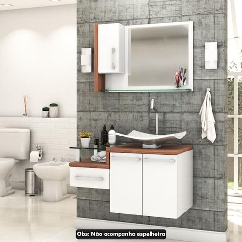 Sobre o ProdutoConjunto Balcão C/Cuba F44 Legno 830 Branco ChessDescrição do Produto:O Conjunto (Balcão + Cuba) Legno GCLG830 é um produto compacto, de design contemporâneo e minimalista, projetado para se encaixar no seu espaço, composto por um gabinete com gaveta lateral e tampo de apoio de vidro 10mm, sendo perfeito para organizar suas coisas e fazer parte da decoração do seu linha Legno combina a leveza do branco e detalhes em vidro com tons amadeirados, conferindo uma personalidade contemporânea aos móveis de design minimalista e traços retos. Produtos que aliam funcionalidade e praticidade ao seu dia a dia são características marcantes desta coleção!Itens Inclusos:1 Conjunto Balcão C/CubaDimensões dos Produtos:Gabinete: 83 x 43 x 51 cmCuba 43,5 x 36 x 12 cmInformações Logísticas (Comp. X Prof. X Alt.) 60 x 50,5 x 58 cm - Peso: 26,23 81 x 19 x 59 cm - Peso: 1,205 KgPeso Total: 27,435 KgObservações:Não acompanha acessórios decorativos. Imagens meramente ilustrativas.Informações Técnicas / Características:- Cor do Produto: Branco Chess- Cor do Predominante: Branco- Marca: Compace- Modelo: GCLG830- Linha: Legno- Material: Mdp - Acabamento: Perffect Acetinado- Escala de Brilho: Fosco- Fita de Borda: Pvc- Possui Portas: 3- Tipo de Porta: Bater- Tipo da Dobradiça: Metálica- Possui Gavetas: 1- Tipo da Corrediça: Telescópica- Possui Chave: Não- Peso Máximo por Gaveta: 3 kg- Material do Puxador: Abs- Possui Prateleiras: 1- Peso Máximo por Prateleira: 4 kg- Possui Pés: Não, suspenso - Possui Espelho: Não- Possui Vidro: Sim- Acompanha Cuba / Lavatório: Sim, de Mármore Sintético- Furação para Cuba / Lavatório: Não- Tipo da Cuba: Apoio- Cor da Cuba: Branca- Suporta Até (kg): 19 kg - Peso Lí.: 24,4Kg- Recomendações de Uso, Manutenção e Limpeza: Para a limpeza, utilize flanela seca ou pano macio levemente umedecido em água. Utilize um pano seco em seguida. Evite com produtos químicos (solventes, thinner, acetona, etc) e não utilize nenhum tipo de esponja de aço.- Necessita de Montagem: Sim / Acompanha Manual de Montagem- Complexidade da Montagem: Média: pode ser montado por mais de uma pessoa e/ou necessite de maior conhecimento para montagem.- Garantia: 6 meses Material: Mdp | Acabamento: Perffect Acetinado | Escala de Brilho: Fosco | Fita de Borda: Pvc | Possui Portas: 3 | Tipo de Porta: Bater | Tipo da Dobradiça: Metálica | Tipo de Produto: Balcão de Banheiro | Fabricante: Compace | Limite de unidades por venda: É possível comprar até 1 unidade por venda. | Quantidade máxima de pedido: 1 | Comprimento: 83 | Largura: 43 | Altura: 51 | Profundidade: 43 | Preço tabelado: | Cor: Multicolorido | Certificação de teste externa: Não Aplicável | Baterias são necessárias?: false | Palavras-chave de Pesquisa: Não aplicável | Fonte de energia: Não aplicável | Exige montagem: | Principais Características do Produto 2: | da peça: | Peso do item: | Dimensões do item P x L x A: | Principais Características do Produto 0: | Principais Características do Produto 1: | Componentes incluídos: | Is Fragile: | de caixas: | Quantidade de itens: | do modelo: Cor: Branco Chess C/Nogal