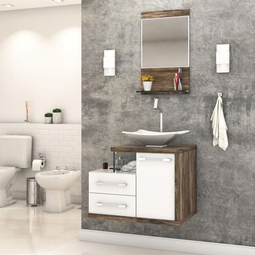 Sobre o ProdutoConjunto Balcão C/Cuba L38 e Espelheira Legno 651 Branco ChessDescrição do Produto:O Conjunto (Balcão + Cuba + Espelheira) Legno KTLG651 é um produto compacto, de design contemporâneo e minimalista, projetado para se encaixar no seu espaço, composto por um gabinete com cuba de apoio, 02 gavetas laterais e detalhe em vidro 10mm. A espelheira possui espelho lapidado e 01 prateleira de vidro 10mm, sendo perfeita para organizar suas coisas e fazer parte da decoração do seu linha Legno combina a leveza do branco e detalhes em vidro com tons amadeirados, conferindo uma personalidade contemporânea aos móveis de design minimalista e traços retos. Produtos que aliam funcionalidade e praticidade ao seu dia a dia são características marcantes desta coleção!Itens Inclusos:1 Conjunto Balcão C/Cuba e EspelheiraDimensões dos Produtos:Gabinete: 65 x 45 x 50 cmEspelheira: 37,5 x 11,5 x 67,5 cmCuba 38,5 x 33 x 11,5 cmInformações Logísticas (Comp. X Prof. X Alt.) 70 x 50 x 56 cm - Peso: 30,03 KgPeso Total: 30,03 KgObservações:Não acompanha acessórios decorativos. Imagens meramente ilustrativas.Informações Técnicas / Características:- Cor do Produto: Branco Chess- Cor do Predominante: Branco- Marca: Compace- Modelo: KTLG651- Linha: Legno- Material: Mdp - Acabamento: Perffect Acetinado- Escala de Brilho: Fosco- Fita de Borda: Pvc- Possui Portas: 1- Tipo de Porta: Bater- Tipo da Dobradiça: Metálica- Possui Gavetas: 2- Tipo da Corrediça: Telescópica- Possui Chave: Não- Peso Máximo por Gaveta: 3 kg- Material do Puxador: Abs- Possui Prateleiras: 1 - Possui Pés: Não, suspenso - Possui Espelho: Sim- Possui Vidro: Sim- Acompanha Cuba / Lavatório: Sim, de Mármore Sintético- Furação para Cuba / Lavatório: Não- Tipo da Cuba: Apoio- Cor da Cuba: Branca- Suporta Até (kg): 20 kg - Peso Lí.: 27,95Kg- Recomendações de Uso, Manutenção e Limpeza: Para a limpeza, utilize flanela seca ou pano macio levemente umedecido em água. Utilize um pano seco em seguida. Evite com produtos químicos (solventes, thinner, acetona, etc) e não utilize nenhum tipo de esponja de aço.- Necessita de Montagem: Sim / Acompanha Manual de Montagem- Complexidade da Montagem: Média: pode ser montado por mais de uma pessoa e/ou necessite de maior conhecimento para montagem.- Garantia: 6 meses Material: Mdp | Acabamento: Perffect Acetinado | Escala de Brilho: Fosco | Fita de Borda: Pvc | Possui Portas: 1 | Tipo de Porta: Bater | Tipo da Dobradiça: Metálica | Limite de unidades por venda: É possível comprar até 1 unidade por venda. | Tipo de Produto: Gabinete de banheiro | Fabricante: Compace | Quantidade máxima de pedido: 1 | Comprimento: 65 | Largura: 45 | Altura: 53 | Profundidade: 45 | Preço tabelado: 549 | Cor: Multicolorido | Certificação de teste externa: Não Aplicável | Baterias são necessárias?: false | Palavras-chave de Pesquisa: Não aplicável | Fonte de energia: Não aplicável | Peso do item: | Componentes incluídos: | Principais Características do Produto 2: | Exige montagem: | da peça: | Principais Características do Produto 1: | Dimensões do item P x L x A: | Is Fragile: | Principais Características do Produto 0: | Quantidade de itens: | do modelo: | de caixas: Cor: Branco Chess C/Carvalho Dark
