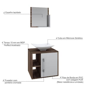 Sobre o ProdutoConjunto Balcão C/Cuba L38 e Espelheira Soft 500 Branco XadrezDescrição do Produto:O Conjunto Balcão C/Cuba e Espelheira Soft 500 KTSF500 tem design compacto, perfeito para pequenos espaços, conta com uma prateleira lateral e uma cuba de apoio, além da linha Basic traz móveis funcionais e de design tradicional, aliando simplicidade e estilo para seu ambiente de banheiro!Itens Inclusos:1 Conjunto Balcão C/Cuba e EspelheiraDimensões dos Produtos:Gabinete: 50 x 40 x 45 cmEspelheira: 40 x 10 x 42 cmCuba 38,5 x 33 x 11,5 cmInformações Logísticas (Comp. X Prof. X Alt.) 54 x 42 x 28 cm - Peso: 18,89 KgPeso Total: 18,89 KgObservações:Não acompanha acessórios decorativos. Imagens meramente ilustrativas.Informações Técnicas / Características:- Cor do Produto: Branco Xadrez- Cor do Predominante: Branco- Marca: Compace- Modelo: KTSF500- Linha: Básico- Material: Mdp - Acabamento: Perfeito Acetinado- Escala de Brilho: Fosco- Fita de Borda: Pvc- Possui Portas: 1- Tipo de Porta: Bater- Tipo da Dobradiça: Metálica - Material do Puxador: Abs- Possui Prateleiras: 2- Peso Máximo por Prateleira: 1 kg Espelheira / 3 kg Balcão- Possui Pés: Não, suspenso - Possui Espelho: Sim- Possui Vidro: Sim- Acompanha Cuba / Lavatório: Sim, de Mármore Sintético- Furação para Cuba / Lavatório: Não- Tipo da Cuba: Apoio- Cor da Cuba: Branca- Suporte Até (kg): 16 kg - Peso Lí.: 17,66Kg- Recomendações de Uso, Manutenção e Limpeza: Para a limpeza, utilize flanela seca ou pano macio levemente umedecido em água. Utilize um pano seco em seguida. Evite com produtos químicos (solventes, diluente, acetona, etc) e não utilize nenhum tipo de esponja de aço.- Necessita de Montagem: Sim / Acompanha Manual de Montagem- Complexidade da Montagem: Média: pode ser montada por mais de uma pessoa e/ou necessita de maior conhecimento para montagem.- Garantia: 6 meses