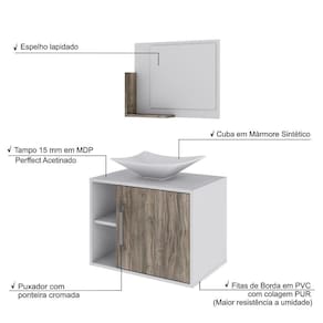 Sobre o ProdutoConjunto Balcão C/Cuba L38 e Espelheira Soft 600 Branco ChessDescrição do Produto:O Conjunto Balcão C/Cuba e Espelheira Soft 600 KTSF600 tem design compacto, perfeito para pequenos espaços, conta com uma prateleira lateral e uma cuba de apoio, além da linha Basic traz móveis funcionais e de design tradicional, aliando simplicidade e estilo para seu ambiente de banheiro!Itens Inclusos:1 Conjunto Balcão C/Cuba e EspelheiraDimensões dos Produtos:Gabinete: 60 x 40 x 45 cmEspelheira: 53 x 10,5 x 42 cmCuba 38,5 x 33 x 11,5 cmInformações Logísticas (Comp. X Prof. X Alt.) 64 x 45 x 26 cm - Peso: 20,45 KgPeso Total: 20,45 KgObservações:Não acompanha acessórios decorativos. Imagens meramente ilustrativas.Informações Técnicas / Características:- Cor do Produto: Branco Chess- Cor do Predominante: Branco- Marca: Compace- Modelo: KTSF600- Linha: Basic- Material: Mdp - Acabamento: Perffect Acetinado- Escala de Brilho: Fosco- Fita de Borda: Pvc- Possui Portas: 1- Tipo de Porta: Bater- Tipo da Dobradiça: Metálica - Material do Puxador: Abs- Possui Prateleiras: 2- Peso Máximo por Prateleira: 1 kg Espelheira / 3 kg Balcão- Possui Pés: Não, suspenso - Possui Espelho: Sim- Possui Vidro: Sim- Acompanha Cuba / Lavatório: Sim, de Mármore Sintético- Furação para Cuba / Lavatório: Não- Tipo da Cuba: Apoio- Cor da Cuba: Branca- Suporta Até (kg): 16 kg - Peso Lí.: 19,03Kg- Recomendações de Uso, Manutenção e Limpeza: Para a limpeza, utilize flanela seca ou pano macio levemente umedecido em água. Utilize um pano seco em seguida. Evite com produtos químicos (solventes, thinner, acetona, etc) e não utilize nenhum tipo de esponja de aço.- Necessita de Montagem: Sim / Acompanha Manual de Montagem- Complexidade da Montagem: Média: pode ser montado por mais de uma pessoa e/ou necessite de maior conhecimento para montagem.- Garantia: 6 meses Material: Mdp | Acabamento: Perffect Acetinado | Escala de Brilho: Fosco | Fita de Borda: Pvc | Possui Portas: 1 | Tipo de Porta: Bater | Tipo da Dobradiça: Metálica | Limite de unidades por venda: É possível comprar até 1 unidade por venda. | Comprimento: 60 | Largura: 40 | Quantidade máxima de pedido: 1 | Altura: 45 | Profundidade: 40 | Preço Tabelado: 307.89999999999998 | Cor: Multicolorido | Certificação de teste externa: Não Aplicável | Baterias são necessárias?: false | Palavras-chave de Pesquisa: Não aplicável | Fonte de energia: Não aplicável | Fabricante: Compace | Peso do item: | Exige montagem: | da peça: | Componentes incluídos: | Principais Características do Produto 1: | Principais Características do Produto 0: | Dimensões do item P x L x A: | Principais Características do Produto 2: | Is Fragile: | de caixas: | do modelo: | Quantidade de itens: Cor: Branco Chess C/Carvalho Dark