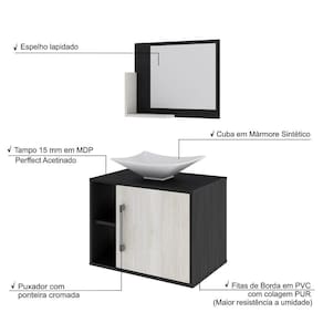 Sobre o ProdutoConjunto Balcão C/Cuba L38 e Espelheira Soft 600 Branco ChessDescrição do Produto:O Conjunto Balcão C/Cuba e Espelheira Soft 600 KTSF600 tem design compacto, perfeito para pequenos espaços, conta com uma prateleira lateral e uma cuba de apoio, além da linha Basic traz móveis funcionais e de design tradicional, aliando simplicidade e estilo para seu ambiente de banheiro!Itens Inclusos:1 Conjunto Balcão C/Cuba e EspelheiraDimensões dos Produtos:Gabinete: 60 x 40 x 45 cmEspelheira: 53 x 10,5 x 42 cmCuba 38,5 x 33 x 11,5 cmInformações Logísticas (Comp. X Prof. X Alt.) 64 x 45 x 26 cm - Peso: 20,45 KgPeso Total: 20,45 KgObservações:Não acompanha acessórios decorativos. Imagens meramente ilustrativas.Informações Técnicas / Características:- Cor do Produto: Branco Chess- Cor do Predominante: Branco- Marca: Compace- Modelo: KTSF600- Linha: Basic- Material: Mdp - Acabamento: Perffect Acetinado- Escala de Brilho: Fosco- Fita de Borda: Pvc- Possui Portas: 1- Tipo de Porta: Bater- Tipo da Dobradiça: Metálica - Material do Puxador: Abs- Possui Prateleiras: 2- Peso Máximo por Prateleira: 1 kg Espelheira / 3 kg Balcão- Possui Pés: Não, suspenso - Possui Espelho: Sim- Possui Vidro: Sim- Acompanha Cuba / Lavatório: Sim, de Mármore Sintético- Furação para Cuba / Lavatório: Não- Tipo da Cuba: Apoio- Cor da Cuba: Branca- Suporta Até (kg): 16 kg - Peso Lí.: 19,03Kg- Recomendações de Uso, Manutenção e Limpeza: Para a limpeza, utilize flanela seca ou pano macio levemente umedecido em água. Utilize um pano seco em seguida. Evite com produtos químicos (solventes, thinner, acetona, etc) e não utilize nenhum tipo de esponja de aço.- Necessita de Montagem: Sim / Acompanha Manual de Montagem- Complexidade da Montagem: Média: pode ser montado por mais de uma pessoa e/ou necessite de maior conhecimento para montagem.- Garantia: 6 meses Material: Mdp | Acabamento: Perffect Acetinado | Escala de Brilho: Fosco | Fita de Borda: Pvc | Possui Portas: 1 | Tipo de Porta: Bater | Tipo da Dobradiça: Metálica | Limite de unidades por venda: É possível comprar até 1 unidade por venda. | Comprimento: 60 | Largura: 40 | Quantidade máxima de pedido: 1 | Altura: 45 | Profundidade: 40 | Preço Tabelado: 307.89999999999998 | Cor: Multicolorido | Certificação de teste externa: Não Aplicável | Baterias são necessárias?: false | Palavras-chave de Pesquisa: Não aplicável | Fonte de energia: Não aplicável | Fabricante: Compace | Peso do item: | Exige montagem: | da peça: | Componentes incluídos: | Principais Características do Produto 1: | Principais Características do Produto 0: | Dimensões do item P x L x A: | Principais Características do Produto 2: | Is Fragile: | de caixas: | do modelo: | Quantidade de itens: Cor: Preto Onix C/Snow