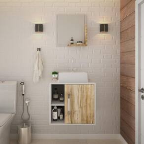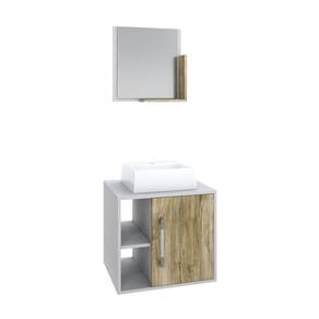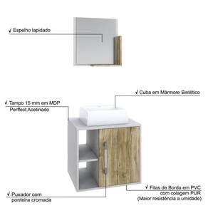 Conjunto Balcão C/cuba Q32 E Espelheira Soft 500 Branco Chess Branco Chess C/carvalho