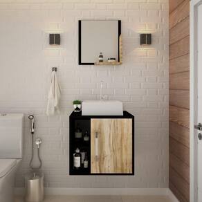 Conjunto Balcão C-cuba Q32 E Espelheira Soft 500 Preto ônix C-branco Chess Preto ônix C-carvalho