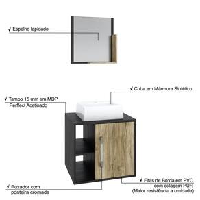 Conjunto Balcão C/cuba Q32 E Espelheira Soft 500 Preto ônix C/branco Chess Preto ônix C/carvalho