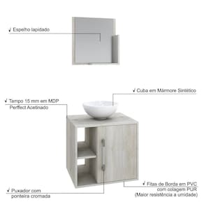 Sobre o ProdutoConjunto Balcão C/Cuba R30 e Espelheira Soft 500 Branco ChessDescrição do Produto:O Conjunto Balcão C/Cuba e Espelheira Soft 500 KTSF500 tem design compacto, perfeito para pequenos espaços, conta com uma prateleira lateral e uma cuba de apoio, além da linha Basic traz móveis funcionais e de design tradicional, aliando simplicidade e estilo para seu ambiente de banheiro!Itens Inclusos:1 Conjunto Balcão C/Cuba e EspelheiraDimensões dos Produtos:Gabinete: 50 x 40 x 45 cmEspelheira: 40 x 10 x 42 cmCuba 30,5 x 30,5 x 12,5 cmInformações Logísticas (Comp. X Prof. X Alt.) 54 x 42 x 28 cm - Peso: 18,58 KgPeso Total: 18,58 KgObservações:Não acompanha acessórios decorativos. Imagens meramente ilustrativas.Informações Técnicas / Características:- Cor do Produto: Branco Chess- Cor do Predominante: Branco- Marca: Compace- Modelo: KTSF500- Linha: Basic- Material: Mdp - Acabamento: Perffect Acetinado- Escala de Brilho: Fosco- Fita de Borda: Pvc- Possui Portas: 1- Tipo de Porta: Bater- Tipo da Dobradiça: Metálica - Material do Puxador: Abs- Possui Prateleiras: 2- Peso Máximo por Prateleira: 1 kg Espelheira / 3 kg Balcão- Possui Pés: Não, suspenso - Possui Espelho: Sim- Possui Vidro: Sim- Acompanha Cuba / Lavatório: Sim, de Mármore Sintético- Furação para Cuba / Lavatório: Não- Tipo da Cuba: Apoio- Cor da Cuba: Branca- Suporta Até (kg): 16 kg - Peso Lí.: 17,35Kg- Recomendações de Uso, Manutenção e Limpeza: Para a limpeza, utilize flanela seca ou pano macio levemente umedecido em água. Utilize um pano seco em seguida. Evite com produtos químicos (solventes, thinner, acetona, etc) e não utilize nenhum tipo de esponja de aço.- Necessita de Montagem: Sim / Acompanha Manual de Montagem- Complexidade da Montagem: Média: pode ser montado por mais de uma pessoa e/ou necessite de maior conhecimento para montagem.- Garantia: 6 meses Material: Mdp | Acabamento: Perffect Acetinado | Escala de Brilho: Fosco | Fita de Borda: Pvc | Possui Portas: 1 | Tipo de Porta: Bater | Tipo da Dobradiça: Metálica | Limite de unidades por venda: É possível comprar até 1 unidade por venda. | Tipo de produto: Gabinete de banheiro | Quantidade máxima de pedido: 1 | Fabricante: Compace | Comprimento: 50 | Largura: 40 | Altura: 45 | Profundidade: 45 | Preço trabelado: | Componentes incluídos: | Principais Características do Produto 0: | Baterias são necessárias?: | Principais Características do Produto 2: | Cor: | Principais Características do Produto 1: | Certificação de teste externa: | Palavras-chave de Pesquisa: | Is Fragile: | Dimensões do item P x L x A: | Exige montagem: | da peça: | Peso do item: | do modelo: | Quantidade de itens: | de caixas: Cor: Snow