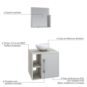 Sobre o ProdutoConjunto Balcão C/Cuba R30 e Espelheira Soft 500 Branco ChessDescrição do Produto:O Conjunto Balcão C/Cuba e Espelheira Soft 500 KTSF500 tem design compacto, perfeito para pequenos espaços, conta com uma prateleira lateral e uma cuba de apoio, além da linha Basic traz móveis funcionais e de design tradicional, aliando simplicidade e estilo para seu ambiente de banheiro!Itens Inclusos:1 Conjunto Balcão C/Cuba e EspelheiraDimensões dos Produtos:Gabinete: 50 x 40 x 45 cmEspelheira: 40 x 10 x 42 cmCuba 30,5 x 30,5 x 12,5 cmInformações Logísticas (Comp. X Prof. X Alt.) 54 x 42 x 28 cm - Peso: 18,58 KgPeso Total: 18,58 KgObservações:Não acompanha acessórios decorativos. Imagens meramente ilustrativas.Informações Técnicas / Características:- Cor do Produto: Branco Chess- Cor do Predominante: Branco- Marca: Compace- Modelo: KTSF500- Linha: Basic- Material: Mdp - Acabamento: Perffect Acetinado- Escala de Brilho: Fosco- Fita de Borda: Pvc- Possui Portas: 1- Tipo de Porta: Bater- Tipo da Dobradiça: Metálica - Material do Puxador: Abs- Possui Prateleiras: 2- Peso Máximo por Prateleira: 1 kg Espelheira / 3 kg Balcão- Possui Pés: Não, suspenso - Possui Espelho: Sim- Possui Vidro: Sim- Acompanha Cuba / Lavatório: Sim, de Mármore Sintético- Furação para Cuba / Lavatório: Não- Tipo da Cuba: Apoio- Cor da Cuba: Branca- Suporta Até (kg): 16 kg - Peso Lí.: 17,35Kg- Recomendações de Uso, Manutenção e Limpeza: Para a limpeza, utilize flanela seca ou pano macio levemente umedecido em água. Utilize um pano seco em seguida. Evite com produtos químicos (solventes, thinner, acetona, etc) e não utilize nenhum tipo de esponja de aço.- Necessita de Montagem: Sim / Acompanha Manual de Montagem- Complexidade da Montagem: Média: pode ser montado por mais de uma pessoa e/ou necessite de maior conhecimento para montagem.- Garantia: 6 meses Material: Mdp | Acabamento: Perffect Acetinado | Escala de Brilho: Fosco | Fita de Borda: Pvc | Possui Portas: 1 | Tipo de Porta: Bater | Tipo da Dobradiça: Metálica | Limite de unidades por venda: É possível comprar até 1 unidade por venda. | Tipo de produto: Gabinete de banheiro | Quantidade máxima de pedido: 1 | Fabricante: Compace | Comprimento: 50 | Largura: 40 | Altura: 45 | Profundidade: 45 | Preço trabelado: | Componentes incluídos: | Principais Características do Produto 0: | Baterias são necessárias?: | Principais Características do Produto 2: | Cor: | Principais Características do Produto 1: | Certificação de teste externa: | Palavras-chave de Pesquisa: | Is Fragile: | Dimensões do item P x L x A: | Exige montagem: | da peça: | Peso do item: | do modelo: | Quantidade de itens: | de caixas: Cor: Snow C/Branco Chess