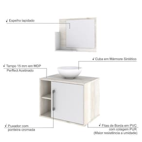 Sobre o ProdutoConjunto Balcão C/Cuba R30 e Espelheira Soft 600 Branco ChessDescrição do Produto:O Conjunto Balcão C/Cuba e Espelheira Soft 600 KTSF600 tem design compacto, perfeito para pequenos espaços, conta com uma prateleira lateral e uma cuba de apoio, além da linha Basic traz móveis funcionais e de design tradicional, aliando simplicidade e estilo para seu ambiente de banheiro!Itens Inclusos:1 Conjunto Balcão C/Cuba e EspelheiraDimensões dos Produtos:Gabinete: 60 x 40 x 45 cmEspelheira: 53 x 10,5 x 42 cmCuba 30,5 x 30,5 x 12,5 cmInformações Logísticas (Comp. X Prof. X Alt.) 64 x 45 x 26 cm - Peso: 20,14 KgPeso Total: 20,14 KgObservações:Não acompanha acessórios decorativos. Imagens meramente ilustrativas.Informações Técnicas / Características:- Cor do Produto: Branco Chess- Cor do Predominante: Branco- Marca: Compace- Modelo: KTSF600- Linha: Basic- Material: Mdp - Acabamento: Perffect Acetinado- Escala de Brilho: Fosco- Fita de Borda: Pvc- Possui Portas: 1- Tipo de Porta: Bater- Tipo da Dobradiça: Metálica - Material do Puxador: Abs- Possui Prateleiras: 2- Peso Máximo por Prateleira: 1 kg Espelheira / 3 kg Balcão- Possui Pés: Não, suspenso - Possui Espelho: Sim- Possui Vidro: Sim- Acompanha Cuba / Lavatório: Sim, de Mármore Sintético- Furação para Cuba / Lavatório: Não- Tipo da Cuba: Apoio- Cor da Cuba: Branca- Suporta Até (kg): 16 kg - Peso Lí.: 18,72Kg- Recomendações de Uso, Manutenção e Limpeza: Para a limpeza, utilize flanela seca ou pano macio levemente umedecido em água. Utilize um pano seco em seguida. Evite com produtos químicos (solventes, thinner, acetona, etc) e não utilize nenhum tipo de esponja de aço.- Necessita de Montagem: Sim / Acompanha Manual de Montagem- Complexidade da Montagem: Média: pode ser montado por mais de uma pessoa e/ou necessite de maior conhecimento para montagem.- Garantia: 6 meses Material: Mdp | Acabamento: Perffect Acetinado | Escala de Brilho: Fosco | Fita de Borda: Pvc | Possui Portas: 1 | Tipo de Porta: Bater | Tipo da Dobradiça: Metálica | Limite de unidades por venda: É possível comprar até 1 unidade por venda. | Comprimento: 60 | Largura: 40 | Quantidade máxima de pedido: 1 | Altura: 45 | Profundidade: 40 | Preço Tabelado: | Cor: Multicolorido | Certificação de teste externa: Não Aplicável | Baterias são necessárias?: false | Palavras-chave de Pesquisa: Não aplicável | Fonte de energia: Não aplicável | Fabricante: Compace | Principais Características do Produto 0: | Dimensões do item P x L x A: | Exige montagem: | Is Fragile: | Principais Características do Produto 2: | da peça: | Principais Características do Produto 1: | Componentes incluídos: | Peso do item: | do modelo: | de caixas: | Quantidade de itens: Cor: Snow C/Branco Chess
