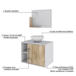 Sobre o ProdutoConjunto Balcão C/Cuba R30 e Espelheira Soft 600 Branco ChessDescrição do Produto:O Conjunto Balcão C/Cuba e Espelheira Soft 600 KTSF600 tem design compacto, perfeito para pequenos espaços, conta com uma prateleira lateral e uma cuba de apoio, além da linha Basic traz móveis funcionais e de design tradicional, aliando simplicidade e estilo para seu ambiente de banheiro!Itens Inclusos:1 Conjunto Balcão C/Cuba e EspelheiraDimensões dos Produtos:Gabinete: 60 x 40 x 45 cmEspelheira: 53 x 10,5 x 42 cmCuba 30,5 x 30,5 x 12,5 cmInformações Logísticas (Comp. X Prof. X Alt.) 64 x 45 x 26 cm - Peso: 20,14 KgPeso Total: 20,14 KgObservações:Não acompanha acessórios decorativos. Imagens meramente ilustrativas.Informações Técnicas / Características:- Cor do Produto: Branco Chess- Cor do Predominante: Branco- Marca: Compace- Modelo: KTSF600- Linha: Basic- Material: Mdp - Acabamento: Perffect Acetinado- Escala de Brilho: Fosco- Fita de Borda: Pvc- Possui Portas: 1- Tipo de Porta: Bater- Tipo da Dobradiça: Metálica - Material do Puxador: Abs- Possui Prateleiras: 2- Peso Máximo por Prateleira: 1 kg Espelheira / 3 kg Balcão- Possui Pés: Não, suspenso - Possui Espelho: Sim- Possui Vidro: Sim- Acompanha Cuba / Lavatório: Sim, de Mármore Sintético- Furação para Cuba / Lavatório: Não- Tipo da Cuba: Apoio- Cor da Cuba: Branca- Suporta Até (kg): 16 kg - Peso Lí.: 18,72Kg- Recomendações de Uso, Manutenção e Limpeza: Para a limpeza, utilize flanela seca ou pano macio levemente umedecido em água. Utilize um pano seco em seguida. Evite com produtos químicos (solventes, thinner, acetona, etc) e não utilize nenhum tipo de esponja de aço.- Necessita de Montagem: Sim / Acompanha Manual de Montagem- Complexidade da Montagem: Média: pode ser montado por mais de uma pessoa e/ou necessite de maior conhecimento para montagem.- Garantia: 6 meses Material: Mdp | Acabamento: Perffect Acetinado | Escala de Brilho: Fosco | Fita de Borda: Pvc | Possui Portas: 1 | Tipo de Porta: Bater | Tipo da Dobradiça: Metálica | Limite de unidades por venda: É possível comprar até 1 unidade por venda. | Comprimento: 60 | Largura: 40 | Quantidade máxima de pedido: 1 | Altura: 45 | Profundidade: 40 | Preço Tabelado: | Cor: Multicolorido | Certificação de teste externa: Não Aplicável | Baterias são necessárias?: false | Palavras-chave de Pesquisa: Não aplicável | Fonte de energia: Não aplicável | Fabricante: Compace | Principais Características do Produto 0: | Dimensões do item P x L x A: | Exige montagem: | Is Fragile: | Principais Características do Produto 2: | da peça: | Principais Características do Produto 1: | Componentes incluídos: | Peso do item: | do modelo: | de caixas: | Quantidade de itens: Cor: Branco Chess C/Carvalho