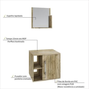 - Peso Máximo por Prateleira: 1 kg Espelheira / 3 kg Balcão